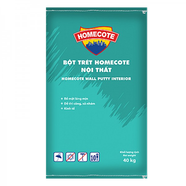 Bột trét Homecote nội thất TOA là sản phẩm bột trét tường cao cấp, dùng để làm phẳng mịn bề mặt hồ vữa, xi măng, thạch cao bên trong nhà, tạo nền láng mịn, chắc chắn và kinh tế, dễ thi công, ít bụi, bám dính tốt, giúp tối ưu hóa lớp sơn hoàn thiện sau này.